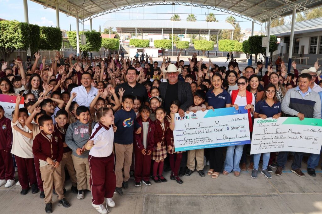 JALPA, ZAC.– Con una inversión de 150 mil pesos, la Escuela Primaria “Francisco Murguía” dio un paso decisivo hacia la modernización de sus instalaciones. El alcalde Olegario Viramontes encabezó la entrega del «Cheque 16», recurso destinado exclusivamente a la adquisición e instalación de 20 equipos de aire acondicionado.