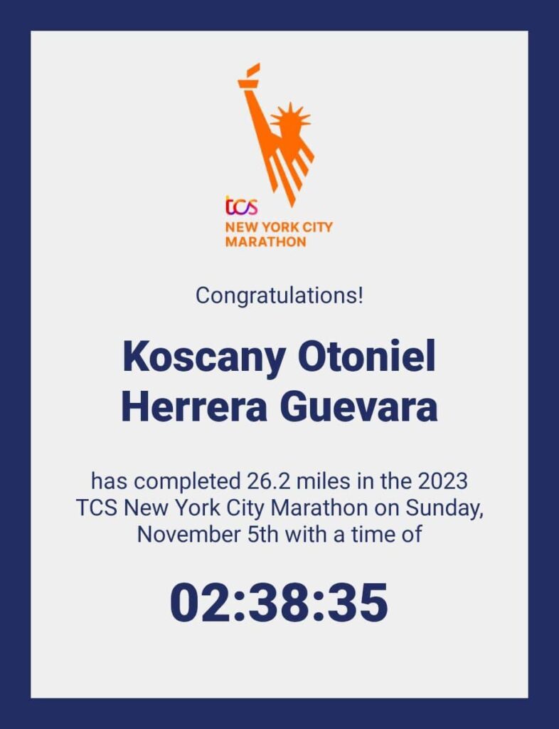 ZACATECAS, ZAC.- Koscany Otoniel Herrera Guevara, originario de Ojocaliente, participó en el Gran Maratón de Nueva York en el que figuró como el mexicano mejor calificado llegando a la meta en el lugar 142.