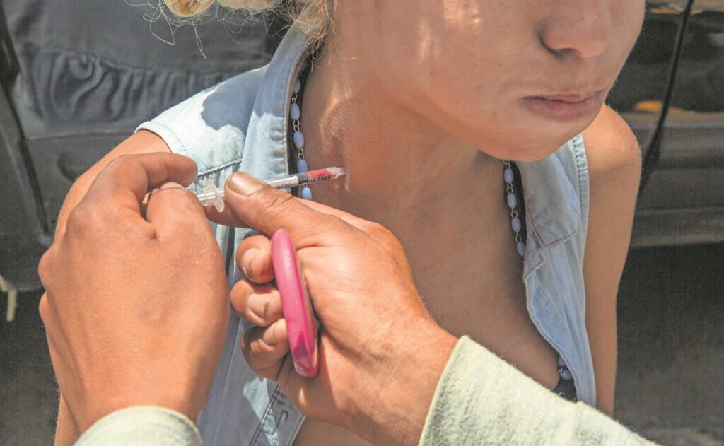 “No sientes nada, nomás te vas, te dejas ir en un sueño profundo”, cuenta la joven chihuahuense de 24 años, radicada en Tijuana, Baja California, que hace apenas seis meses comenzó a inyectarse una mezcla de fentanilo en polvo con metanfetamina disuelta en solución salina.