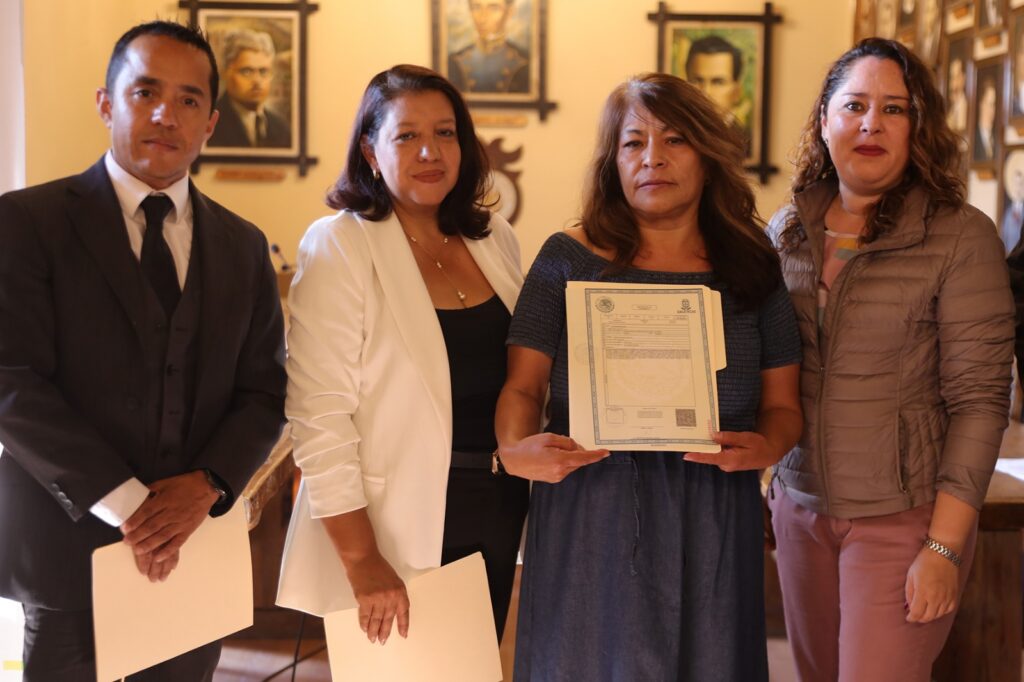 JEREZ, ZAC.- El ayuntamiento, bajo la administración del alcalde Rodrigo Ureño, concretó la cuarta entrega de actas de doble nacionalidad, beneficiando a 95 ciudadanos con la obtención de sus documentos.