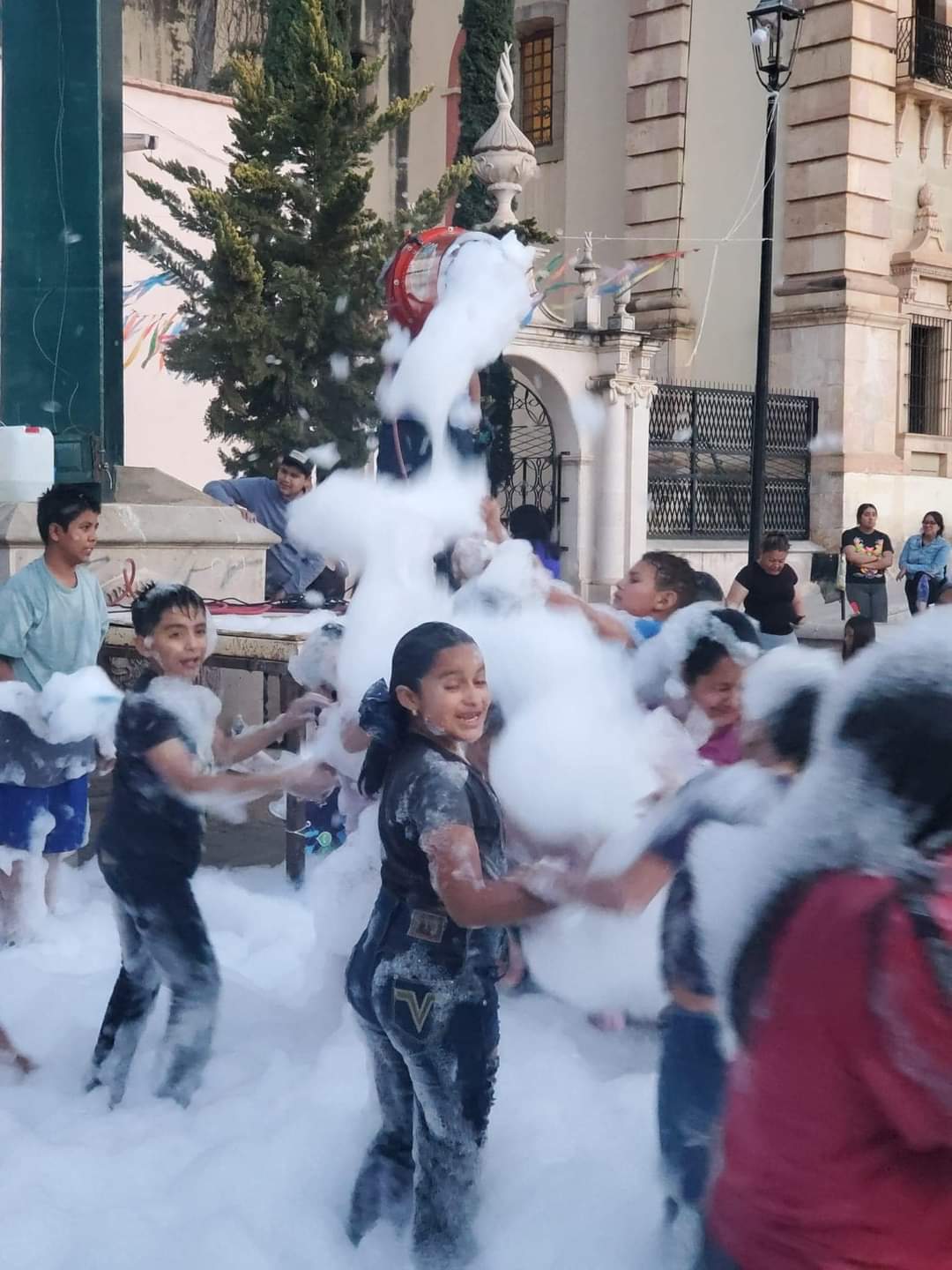 El evento tuvo lugar en la Plaza Principal y asistieron cientos de niños y adolescentes, quienes se divirtieron a lo grande con la espuma que caía al ritmo de la música.