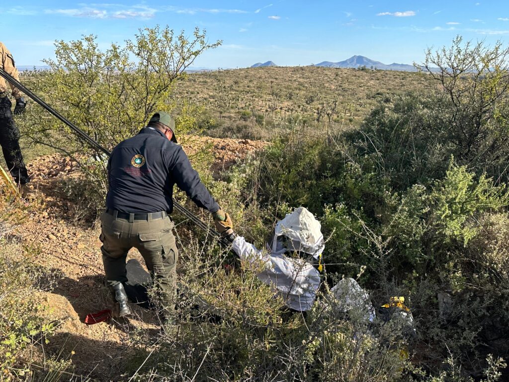 En el área conocida como Las Ánimas de los Cerritos, la prospección forense resultó positiva. El trabajo de búsqueda y exploración, que incluyó el uso de drones, georadares y herramientas de mano, llevó al hallazgo de restos óseos en el interior de un tiro de mina. Estos restos fueron asegurados y resguardados por la Dirección de Servicios Periciales para su análisis e identificación.