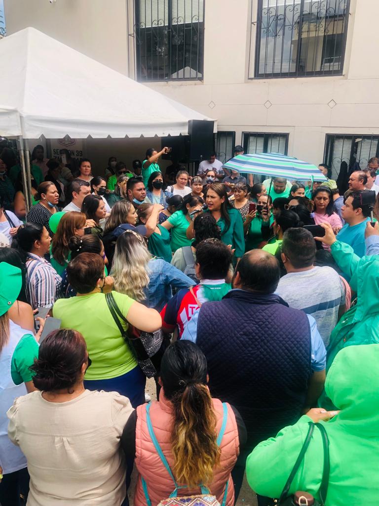 ZACATECAS, ZAC.- Arropada por el apoyo de cientos de trabajadores de la Secretaría de Salud, bajo el grito de “¡Norma, Norma!” y “¡verde, verde!”, Norma Castorena realizó su registró como candidata a líder sindical de la sección 39 del Sindicato de Trabajadores de la Secretaría de Salud.