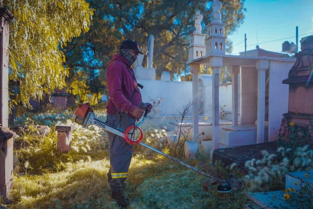 A 20 días de que comiencen las fiestas referentes al Día de Muertos, las cuadrillas de Limpia y Mantenimiento de la secretaría realizan trabajos de poda, deshierbe, limpieza, retiro de escombro, maleza y flores que van quedando.