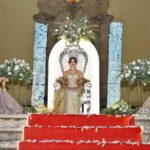 El rector del santuario y el delegado de la comunidad Guillermo López Moreno fueron los encargados de coronar a las princesas Imelda y América.