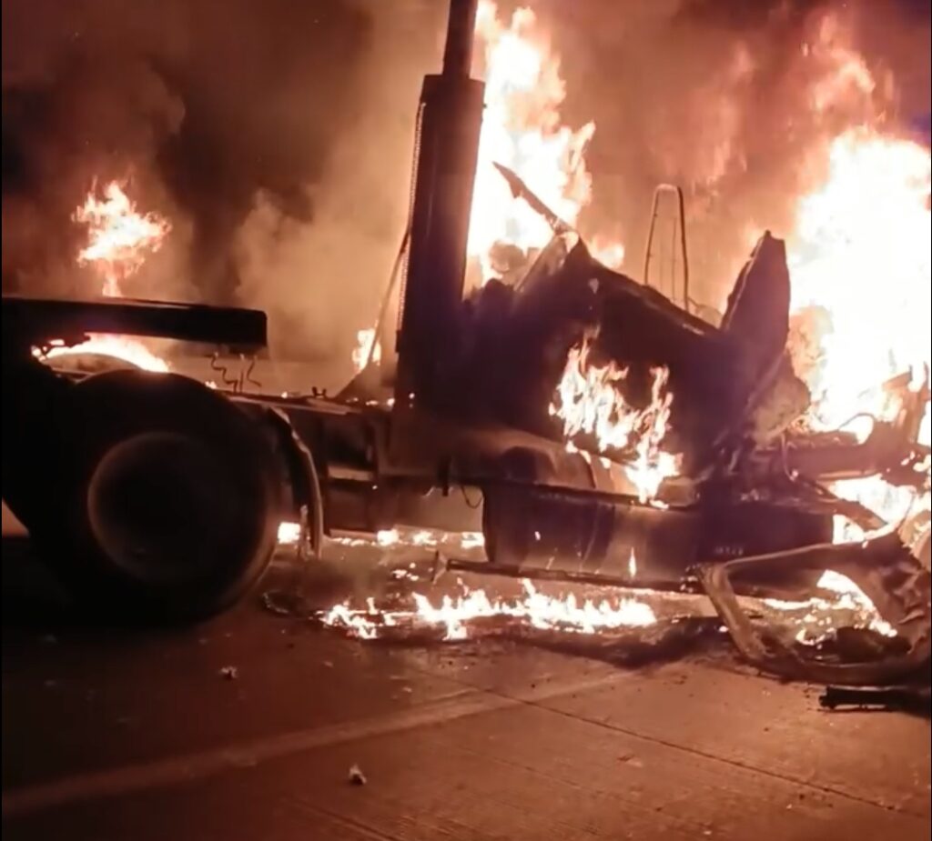 A la altura de Enrique Estrada en la carretera Fresnillo-Zacatecas, incendiaron un tractocamión y lanzaron varias estrellas ponchallantas.