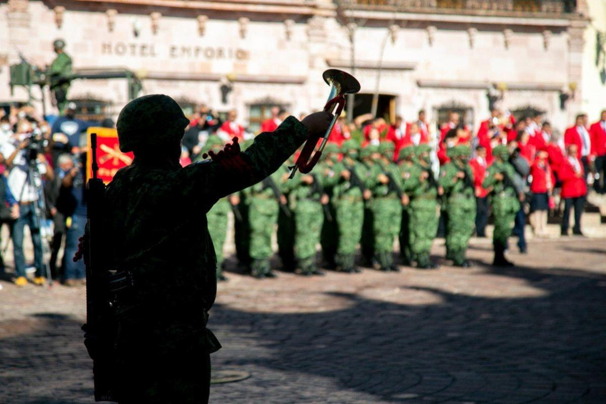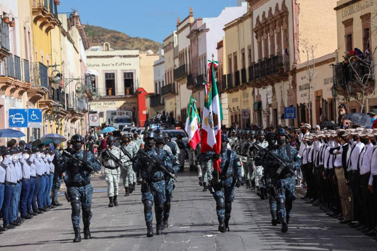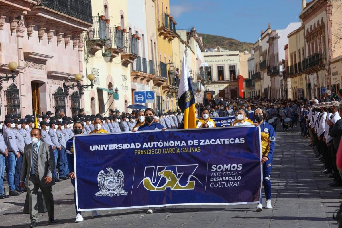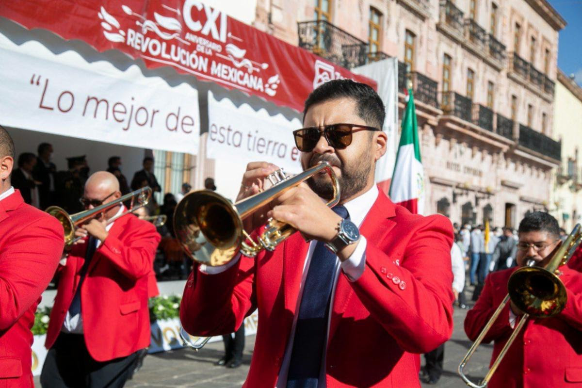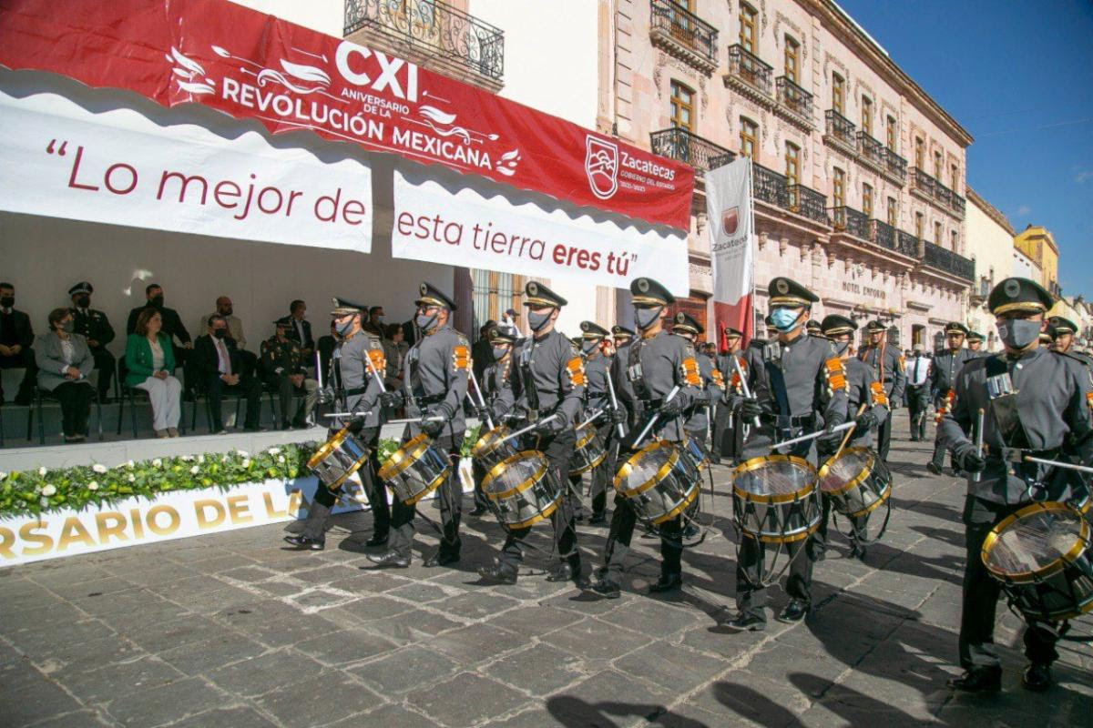 Las vialidades de Zacatecas se inundaron de los colores de la Bandera Nacional y los sonidos de las bandas de guerra de los centros educativos y del Ejército Mexicano, para rememorar uno de los movimientos transformadores de la patria, como lo es la Revolución Mexicana de 1910.
