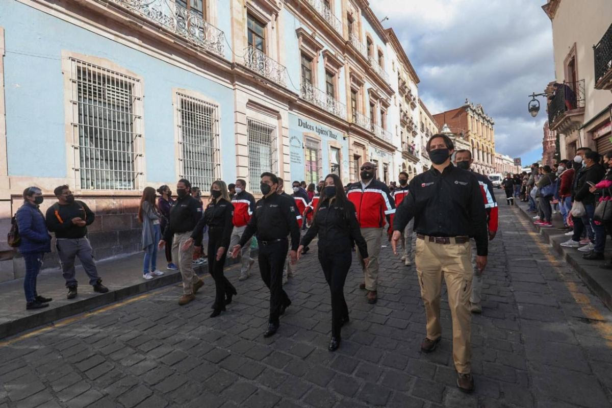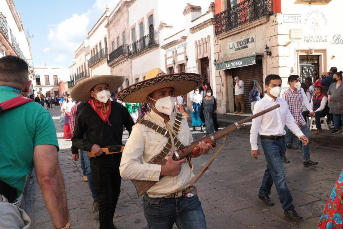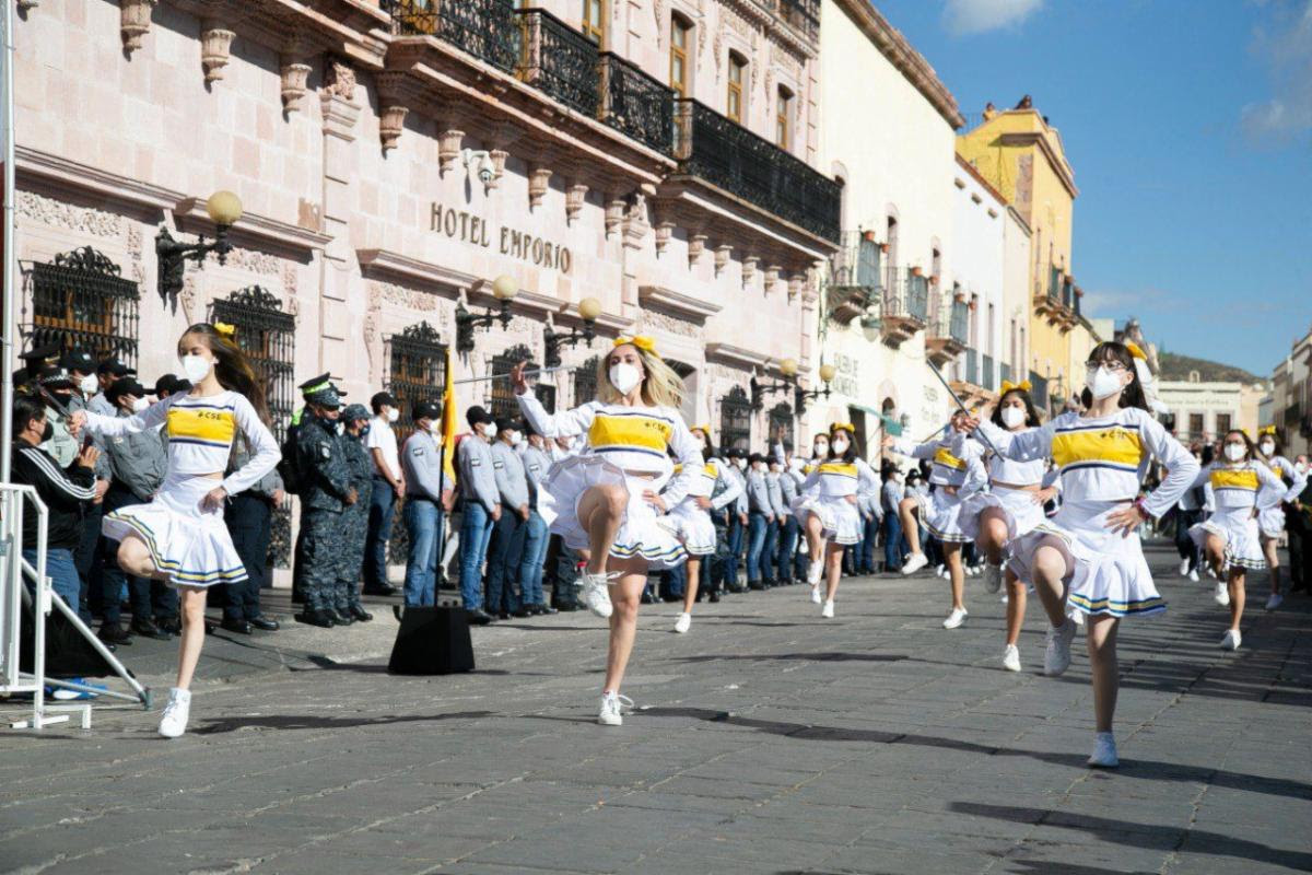 Gracias a que el estado se ubica en el color verde del semáforo epidemiológico de Covid-19, luego de una exitosa jornada de vacunación, los zacatecanos se reunieron en las principales calles y avenidas del Centro Histórico de la capital para, en un ambiente familiar, presenciar el recorrido de los contingentes, integrados por estudiantes y personal administrativo de centros escolares, agrupaciones deportivas, cuerpos de auxilio y rescate, así como de las fuerzas armadas.