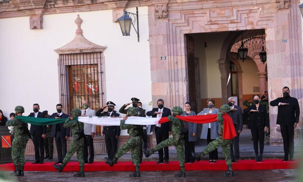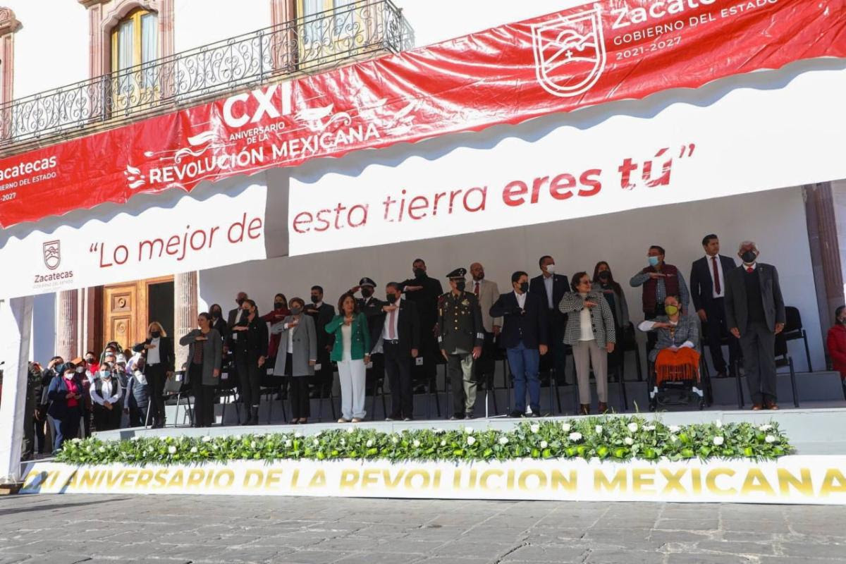 Este sábado, el mandatario estatal encabezó la ceremonia de honores e izamiento de Bandera en el corazón de la Plaza de Armas de Zacatecas, así como el tradicional desfile cívico-militar en conmemoración del 111 Aniversario del inicio de la Revolución Mexicana.