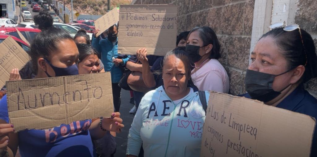 ZACATECAS, ZAC.- Aproximadamente 40 trabajadoras de limpieza del Hospital General del Instituto de Seguridad y Servicios Sociales de Trabajadores del Estado (ISSSTE), se manifestaron afuera del nosocomio para exigir mejoras laborales, entre ellas un salario digno.