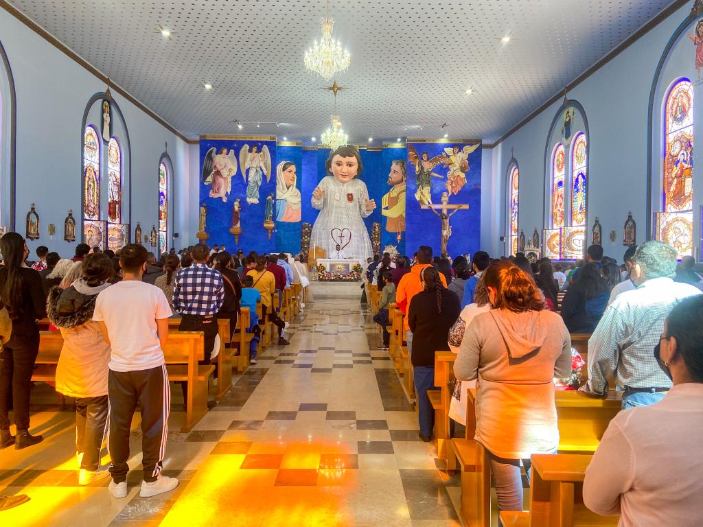 GUADALUPE, ZAC.- Cientos de fieles, con convicción, devoción, amor y alegría arribaron al templo de la Epifanía del Señor para venerar al Niño Dios del Amor, también conocido como“El Niño Dios Gigante.