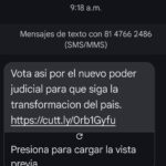 Mientras que mediante SMS, el número 81 4766 2486 habilitó una URL para decir por quienes votar para “que siga la transformación del país”.