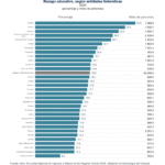 Entre 2022 y 2024, el rezago educativo se redujo en 25 entidades. En puntos porcentuales, dicho rezago disminuyó en Michoacán (3.2), Querétaro (3.1) e Hidalgo (2.0).[Por su parte, seis entidades aumentaron su rezago educativo, principalmente en: Chiapas pasó de 31.1 a 34.0 %; Oaxaca, de 29.1 a 30.5 %; y Veracruz, de 25.5 a 26.3 por ciento. Finalmente, Tabasco se mantuvo como en 2022 (17.9 %).