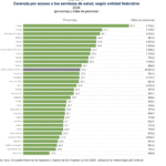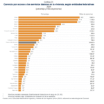 Entre 2022 y 2024, la carencia por acceso a los servicios de salud se redujo en 27 entidades federativas. La entidad con mayor reducción fue Oaxaca (de 65.7 a 43.9 %). Siguieron Guerrero (de 52.7 a 38.9 %) y Tabasco (de 44.8 a 35.1 %). Por su parte, en cinco entidades aumentó la carencia: las de mayor incremento fueron Baja California Sur (de 17.3 a 19.6 %) y Colima (de 21.9 a 24.0 %).