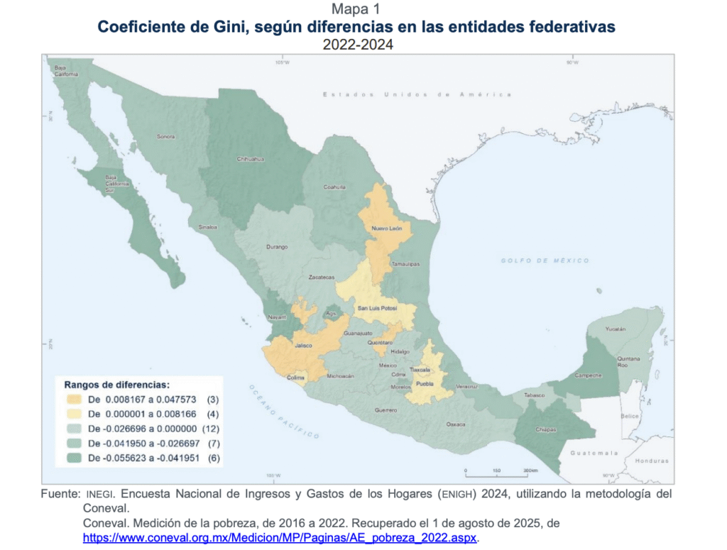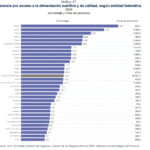 Entre 2022 y 2024, todas las entidades federativas —excepto Chihuahua— redujeron la carencia por acceso a la alimentación nutritiva y de calidad. Los estados con mayores reducciones en el porcentaje de población que presentó esta carencia fueron Veracruz (de 21.6 a 14.2 %), Aguascalientes (de 15.6 a 8.7 %) y Tabasco (de 38.9 a 32.7 %).