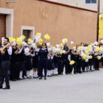 Alumnos de los colegios católicos de la cabecera municipal y la feligresía en general celebraron la visita de Noriega Barceló a Monte Escobedo y lo acompañaron en su recorrido.