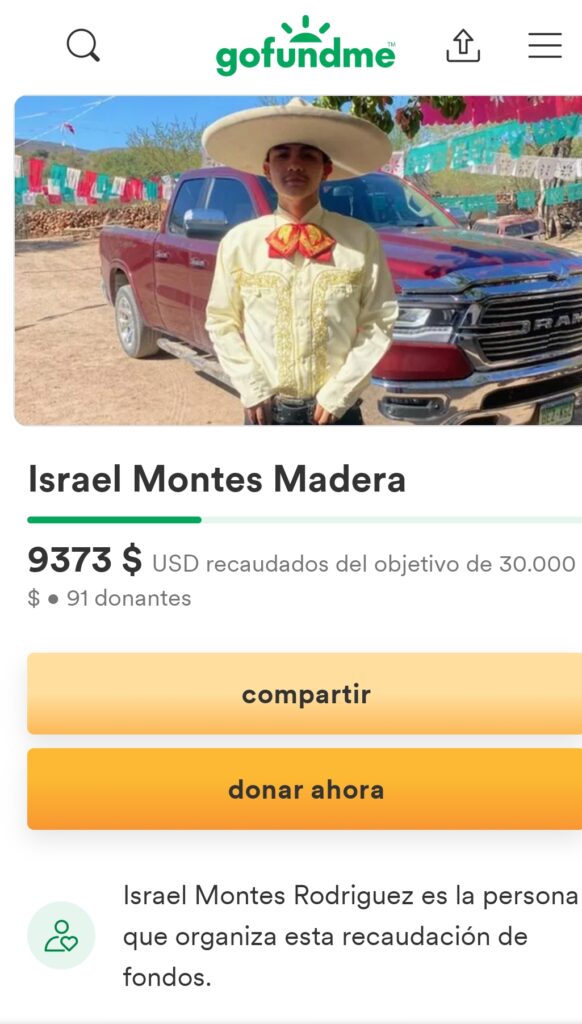 “Para aquellos que lo conocieron o pudieron compartir con él, todos sabíamos que Israel siempre te recibía con los brazos abiertos y una sonrisa grande, nuestro deseo es llevarlo a El Zapote, Zacatecas, Mexico para sepultarlo. No importa que tan chico o grande sea su donación, será inmensamente agradecida”, reza la petición.