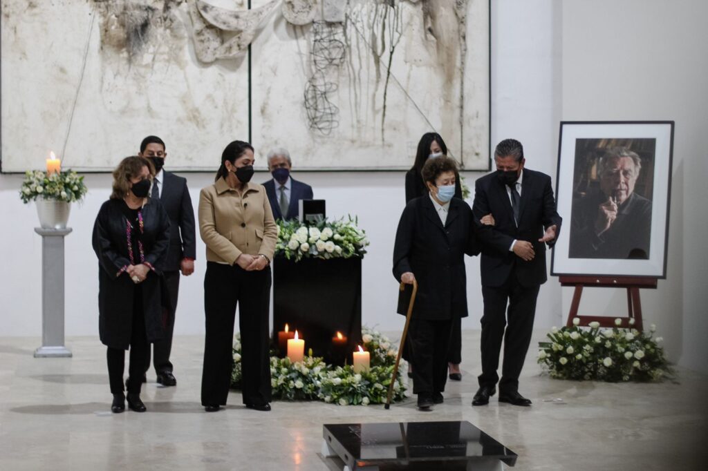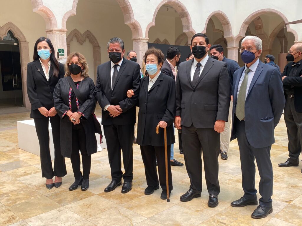 Mercedes Oteyza, viuda del reconocido artista plástico, estuvo acompañada por David Monreal Ávila, gobernador de Zacatecas; María de Jesús Muñoz Reyes, directora general del Instituto Zacatecano de Cultura Ramón López Velarde, y Lucina Jiménez López, directora del Instituto Nacional de Bellas Artes y Literatura (INBAL).