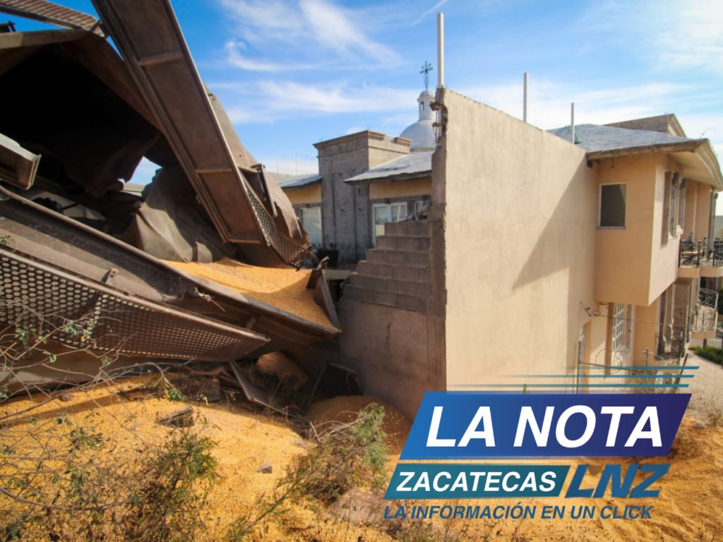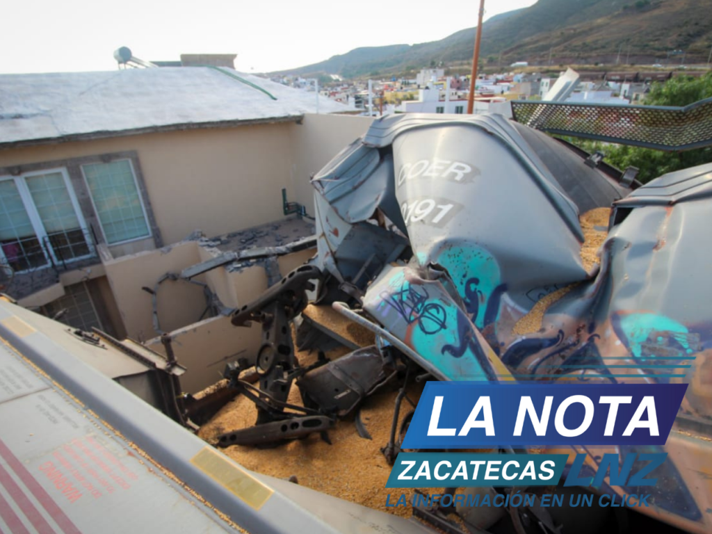 GUADALUPE, ZAC.- La colisión entre dos trenes, provocaron que varios vagones se descarrilaran en diferentes direcciones, afectando la estructura de una casa habitación que se encontraba a unos pocos metros de las vías del tren, en las zona conurbada de Guadalupe y Zacatecas.