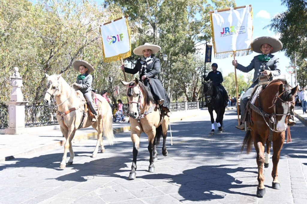 JEREZ DE GARCÍA SALINAS, ZAC.- Muy concurrida estuvo la Primera Cabalgata por el Bienestar, llevada a cabo esta fin de semana en esta ciudad, que reunió a corporaciones de seguridad de los tres niveles de gobierno, asociaciones de charros, autoridades civiles y militares y a  decenas de familias.