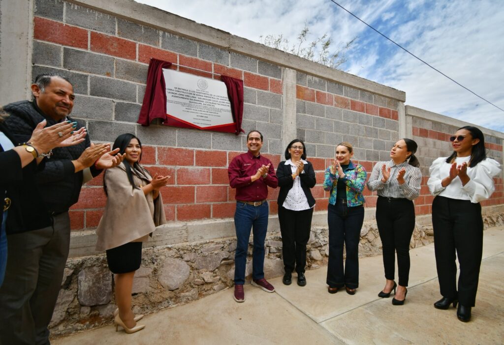 GUADALUPE, ZAC.- El presidente municipal Pepe Saldívar y autoridads del jardín de niños Leonor López Orellana, de Tacoaleche inauguraron la barda perimetral que da protección a alumnos y maestros.
