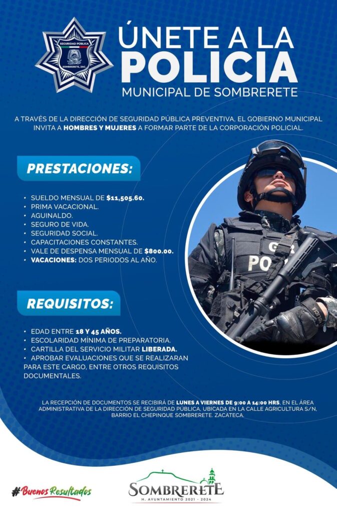 SOMBRERETE, ZAC.- Como parte de las acciones para garantizar la tranquilidad y paz social en el municipio, el ayuntamiento, encabezado por el alcalde Alan Murillo, busca fortalecer a la policía municipal con la contratación de más personal.