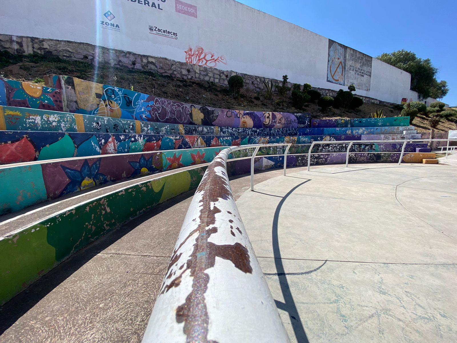 En un recorrido que hizo La Nota Zacatecas se constató que la mayoría de espacios presenta diversos deterioros como la acumulación de basura, paredes grafiteadas y luminarias fundidas, entre otros.