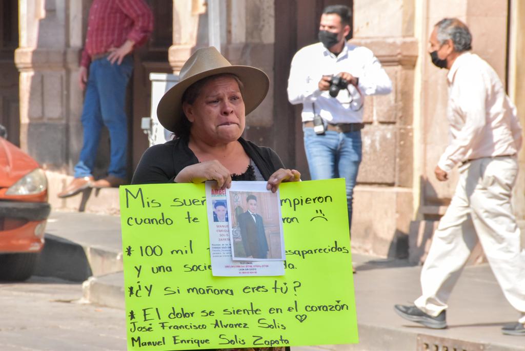 Una vez que el contingente llegó a Plaza de Armas hicieron un pase de lista y dieron a conocer sus exigencias: “Como familiares de personas desaparecidas vivimos en una tortura continua por tener un ser querido desaparecido, por un lado, no saber qué es lo que puedan estar padeciendo nuestros hijos e hijas y por el otro, al percatarnos de cómo la estigmatización, la simulación y la desensibilización provocan efectos perversos que nos afectan”.