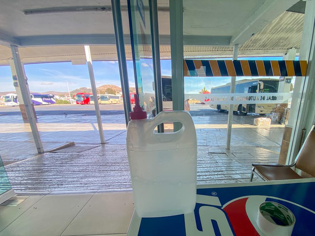 Sin embargo, en un recorrido que realizó La Nota de Zacatecas en la central camionera pudo constatar que dicho filtro no existe, pues sólo hay un garrafón con gel antibacterial y no hay personal.