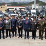 Durante el evento, se entregaron patrullas, uniformes, vehículos y tres ambulancias destinadas a fortalecer las capacidades de las policías municipales, además de unidades para la Fiscalía General de Justicia y la Secretaría de Gobierno.