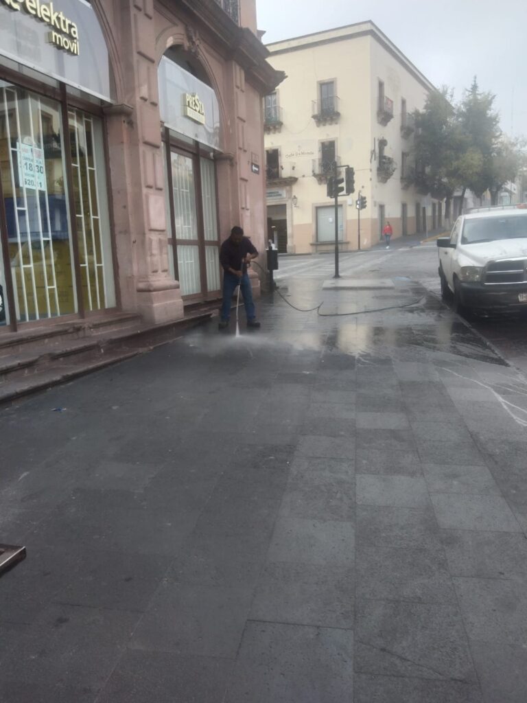 El Departamento de Servicios Públicos realizó una limpieza integral de la Plazuela 450 y de la alameda J. Trinidad García de la Cadena, esta última tras la Carrera Contra el Cáncer organizada por AMANC.