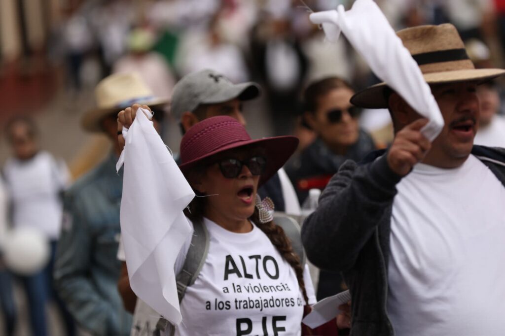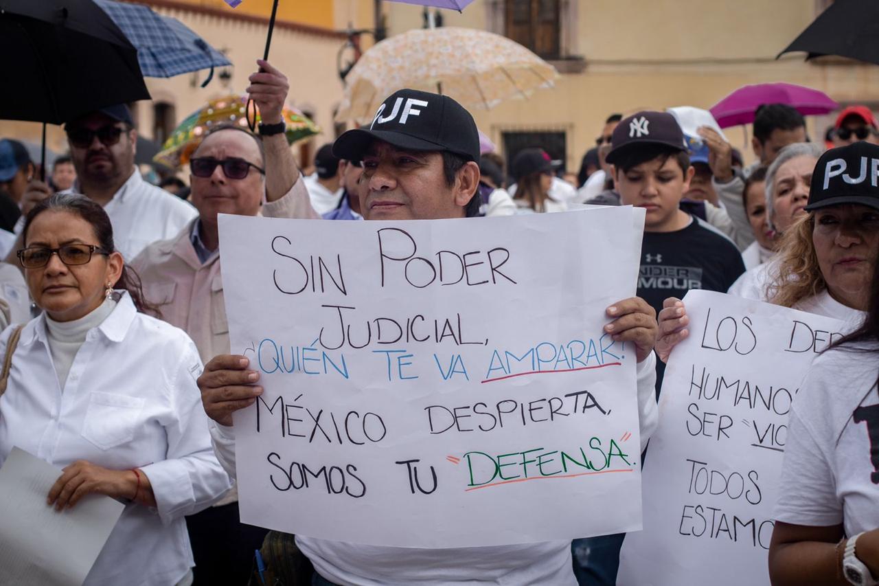 Con pancartas en mano, durante el recorrido expresaron consignas como “mexicanos unidos, estamos protegidos”, “México, despierta, somos tu defensa”, “independencia judicial, garantía nacional” y “los derechos humanos no deben ser violados”.