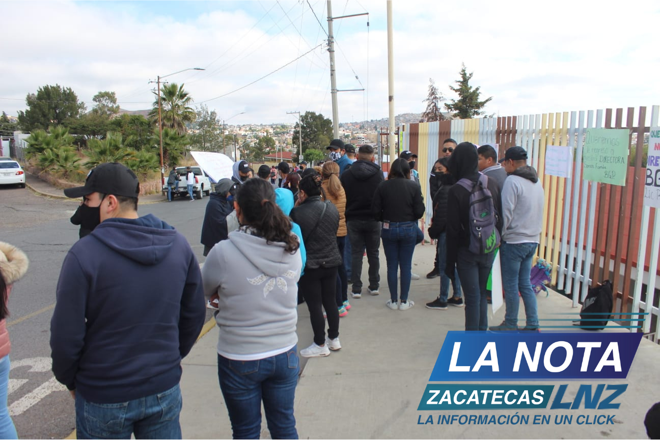 GUADALUPE, ZAC.- Este lunes por la mañana, Padres de familia y alumnos del Bachillerato General Policial (BGP) se manifestaron a las afueras de la institución, al estar en desacuerdo con la destitución de la directora, Rocio Hernández Esparza.