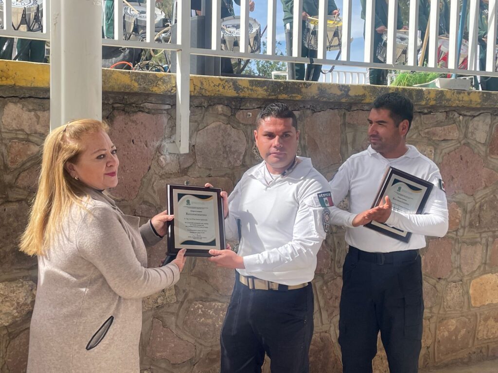ZACATECAS, ZAC.- Los bomberos Moisés Cortés Solís y Luis Felipe Santos Quintanilla recibieron un reconocimiento por su labor en acciones de rescate en Turquía, luego del sismo del 6 de febrero. El personal del Colegio de Bachilleres del Estado de Zacatecas rindió honores a la bandera y entregó los reconocimientos.