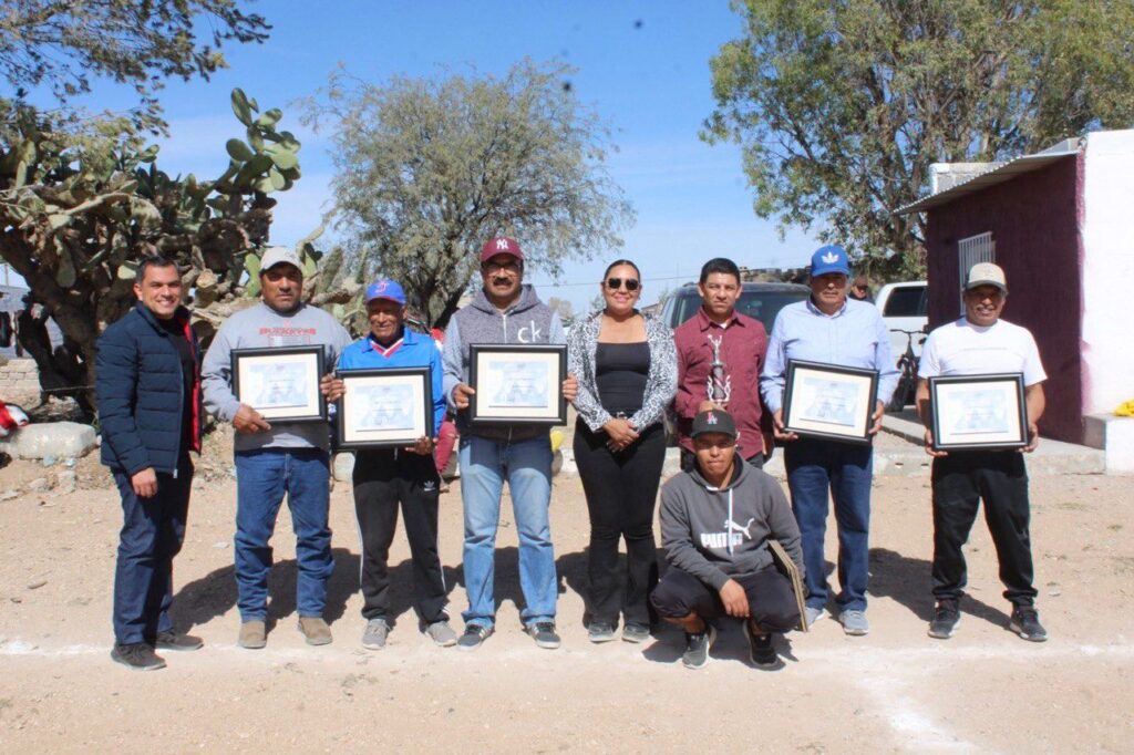 Los jugadores Luis Flores Adame, Rogelio Díaz Reta, Raúl Galván Hernández, Antonio y Víctor Hernández Solís recibieron de mano de la presidenta de Fresnillo un reconocimiento por su gran trayectoria, amplio conocimiento en el deporte y por su interés de que los niños y jóvenes de esta localidad practiquen futbol.