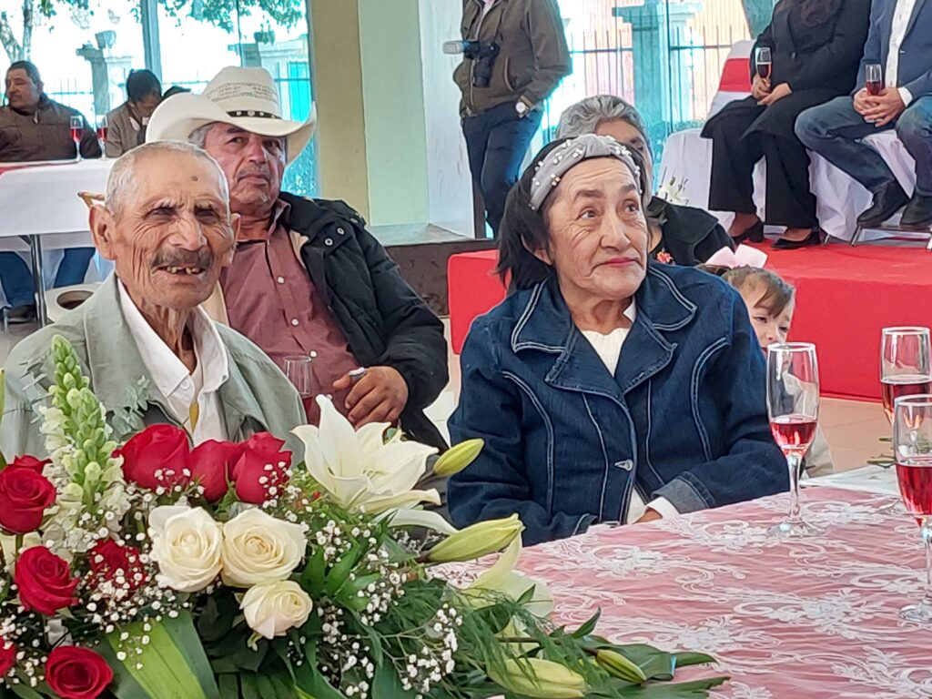 Rogelia y José son una de las 21 parejas, procedentes de todo el municipio, que este Día del Amor y la Amistad decidieron dar legalidad a su unión; ellos por ser los novios más longevos (ella de 61 años y el de 85) fueron los elegidos para que el presidente municipal Pier Michel Ríos Ruiz, los casara.