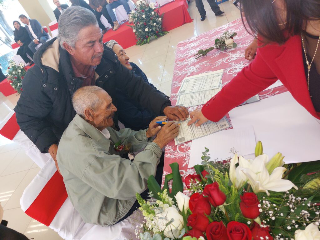 La boda colectiva fue organizada por el Registro Civil como parte de los apoyos que se ofrecen a la ciudadanía; en este caso se condonaron todos los pagos que una boda civil conlleva a fin de dar certeza jurídica a la familia.