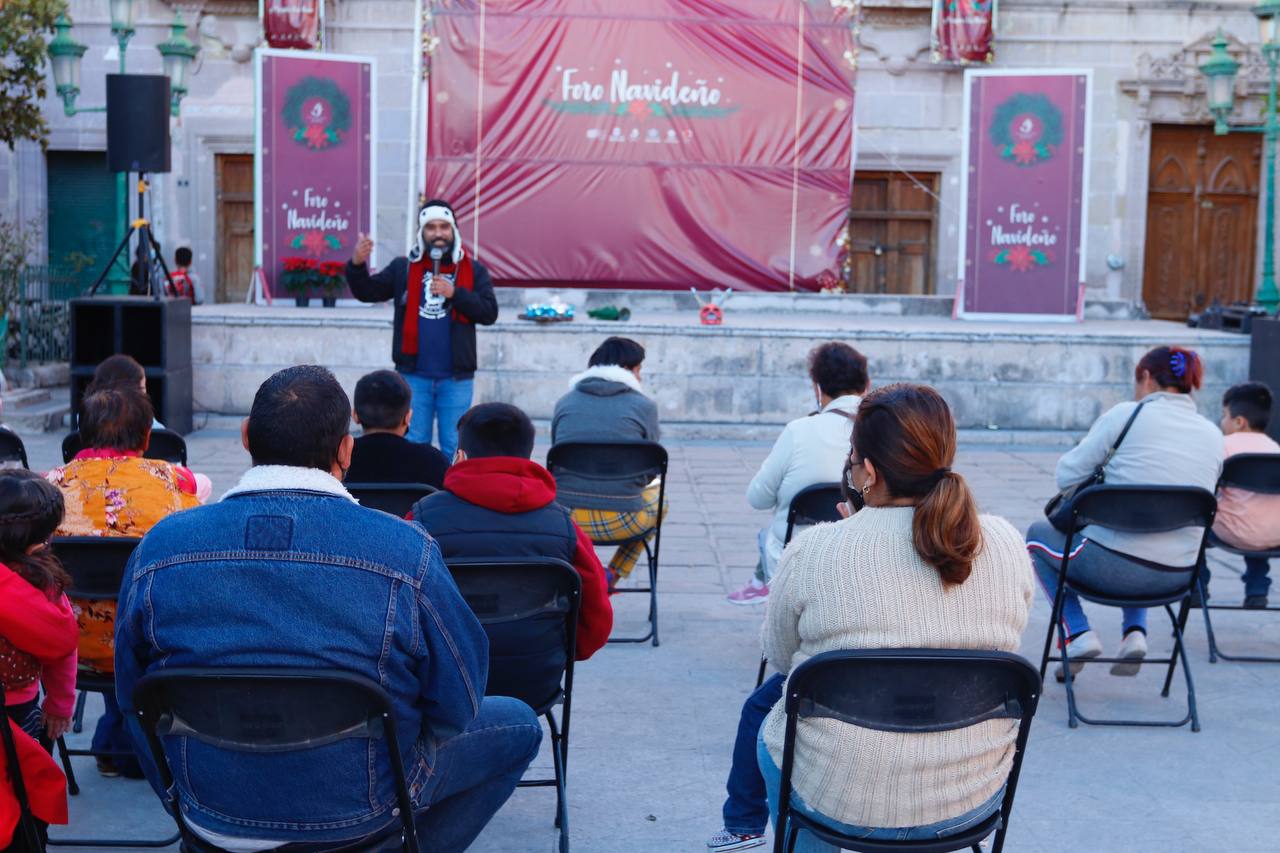 JEREZ, ZAC.- Este miércoles el Foro Navideño 2021 se llenó de magia literaria gracias a la participación del cuentacuentos Andrés Briceño Hernández, y su espectáculo de narración “Entre la Escarcha y el Pesebre”, dentro del festival decembrino que se ha puesto e marcha gracias a la actual administración del Ayuntamiento de Jerez.