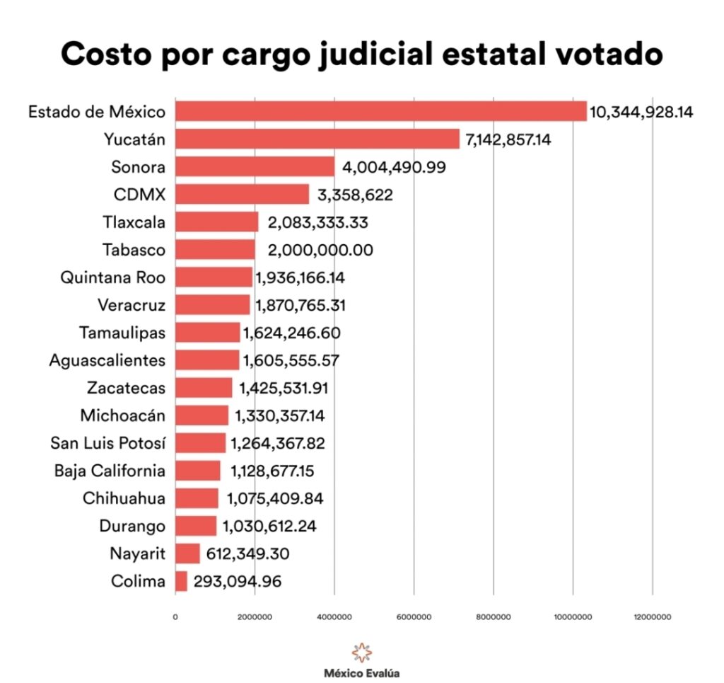 Aunque esta cifra por cargo es inferior al promedio de $2.4 millones detectado por la organización en otras entidades federativas, México Evalúa subraya que la inversión global es desproporcionada, especialmente si se considera la baja participación ciudadana y las dudas sobre la calidad de la competencia que caracterizaron estos procesos a nivel nacional.